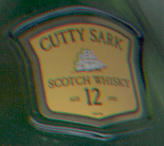 Etiquette en papier collé dans un écusson moulé dans le verre